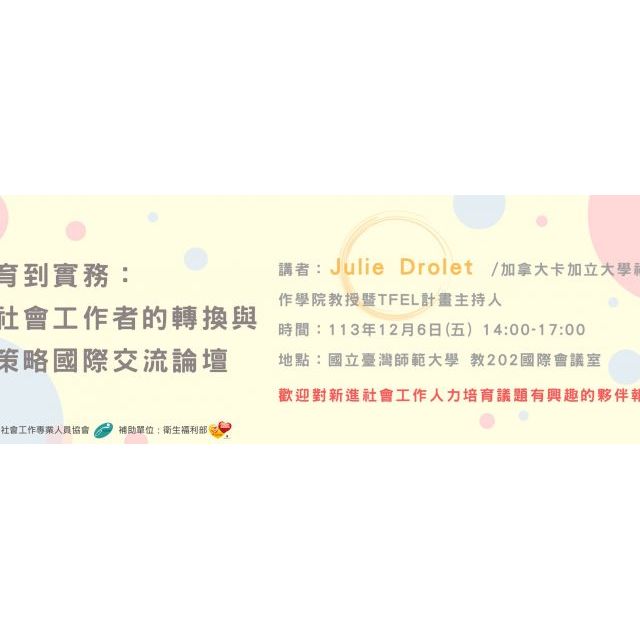 【從教育到實務:新進社會工作者的轉換與支持策略】國際交流論壇