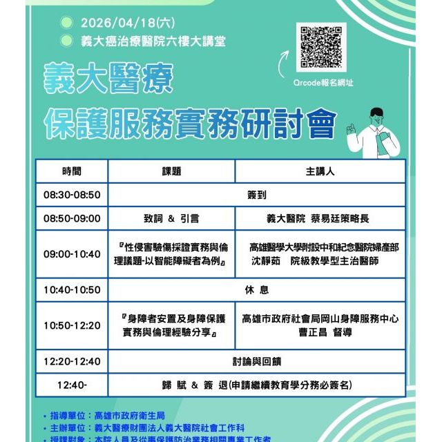 講題:身障者安置及身障保護實務與倫理經驗分享