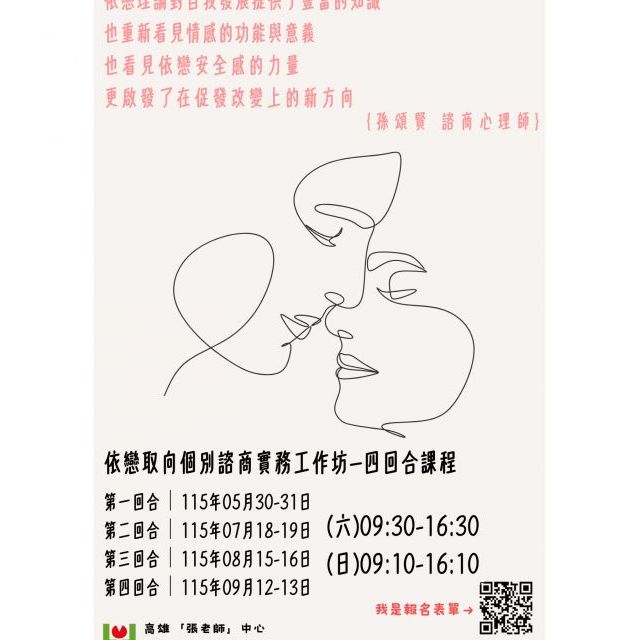 【高雄張老師】依戀取向個別諮商實務工作坊—四回合課程