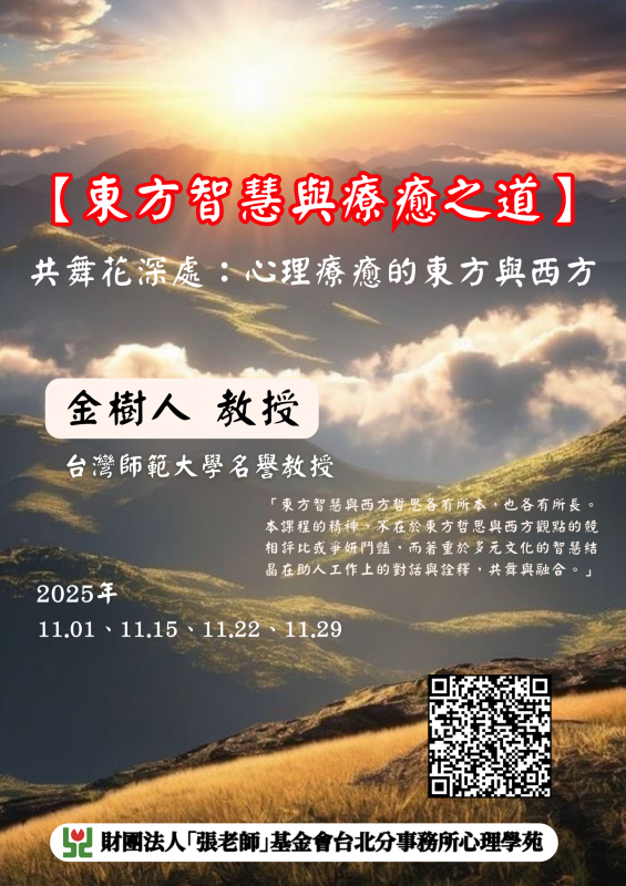 台北「張老師」- 【東方智慧與療癒之道】 共舞花深處:心理療癒的東方與西方