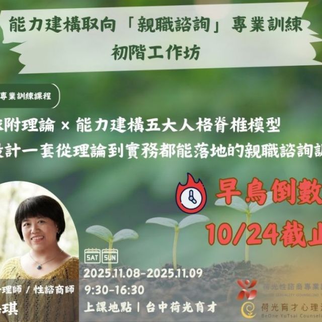 這是一個專為實際會與家長進行親職諮詢的助人工作者所設計的專業訓練班。