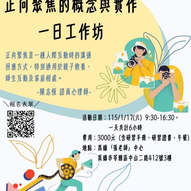 【高雄張老師】正向聚焦的概念與實作一日工作坊